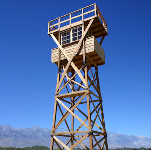 The next day’s Los Angeles Times described a moving and eloquent recognition of the internment experience: “Construction of the guard tower is a milestone because it shows most directly the constant threat under which detainees lived.” Guard towers were manned around the clock by military policemen armed with submachine guns, shotguns and 30′ caliber rifles, all directed inward.